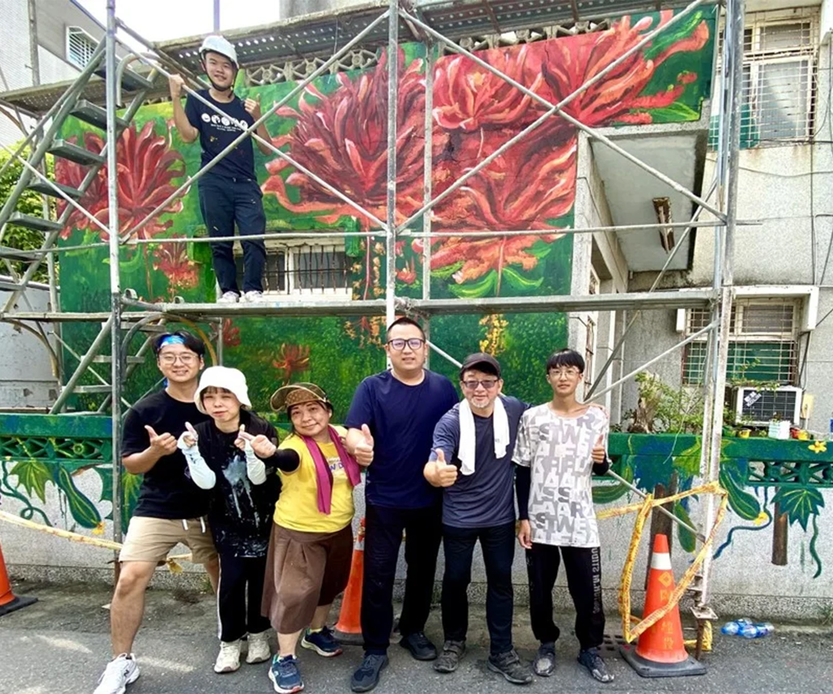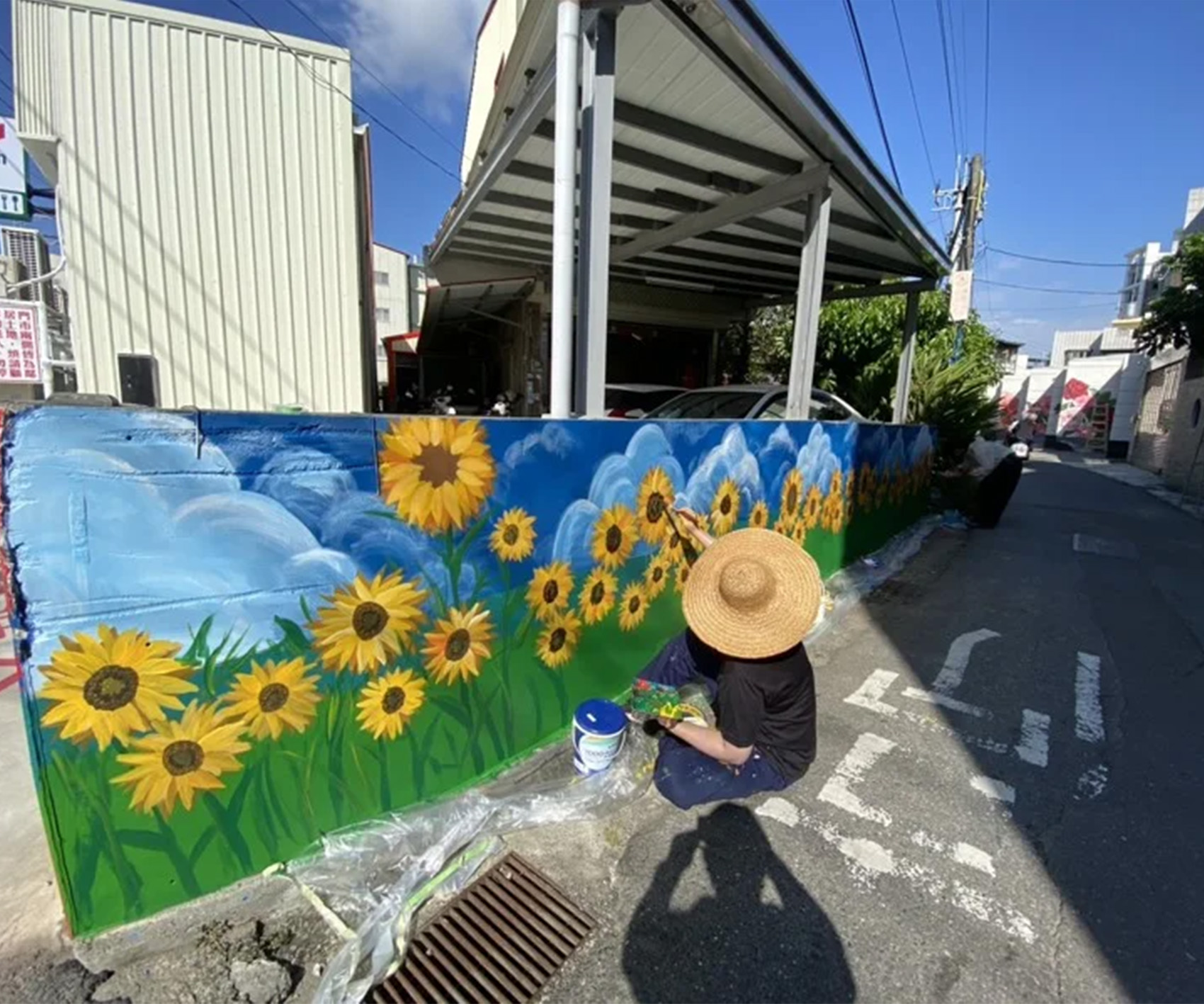 台南市彩繪藝術家莫嘉賓帶領師生妝點老巷弄,變身美麗街景。