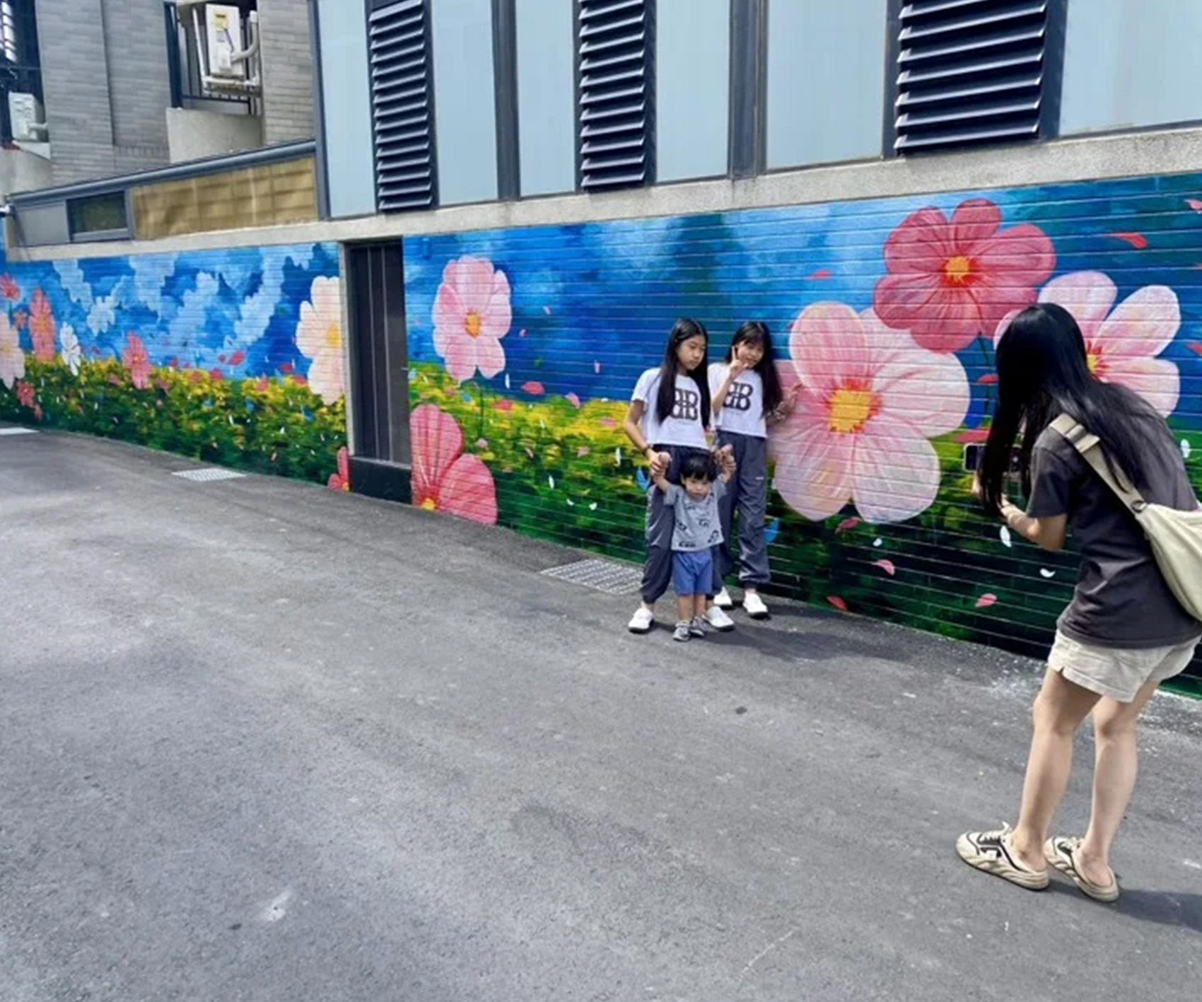 陶喜建設為美化社區,結合彩繪藝術家莫嘉賓彩繪安定巷弄,讓破舊老宅小巷變身成美麗巷景,住戶說,有如進入花園,太漂亮了,也讓社區多了活力。有路過民眾看到美麗彩繪,停駐欣賞還打卡。